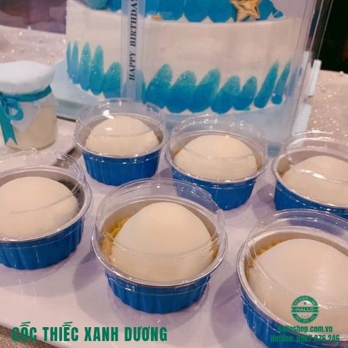 + Cốc nhôm tròn xanh dương dùng để đựng bánh flan