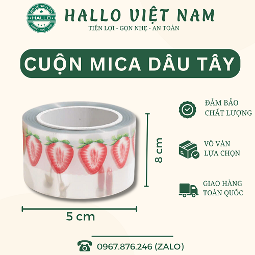 CUỘN MICA HOẠ TIẾT DÂU TÂY 8 CM là sản phẩm dùng để bảo quản và cố định hình dạng của bánh kem, giúp cho chiếc bánh của bạn luôn đẹp mắt và có hình dạng như mong muốn.
