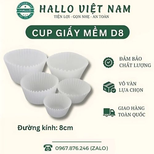 - Cup giấy D8 8cm dùng để đựng bánh bông lan nhỏ