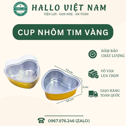 Quý khách quan tâm và có nhu cầu đối với sản phẩm cup nhôm nắp PET hình tim, hãy liên hệ với đội ngũ Hallo Việt Nam qua hotline/Zalo: 0967.876.246 để được tư vấn và hỗ trợ.