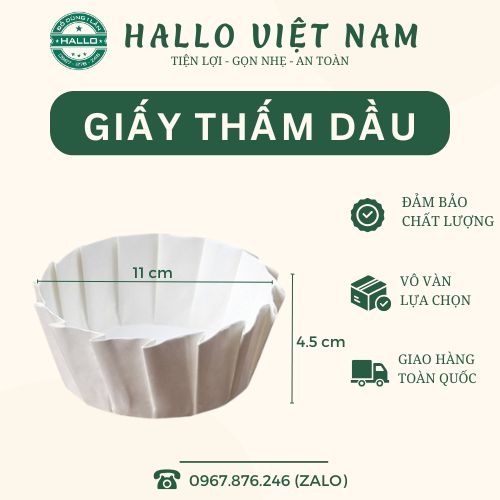 - Chất liệu: Giấy thực phẩm cao cấp có khả năng thấm dầu, chống dính, an toàn khi tiếp xúc trực tiếp với thực phẩm