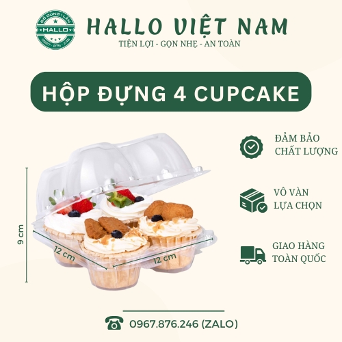 - Hộp 4 cupcake nắp gập trong suốt có quai xách dùng để đựng tiramisu