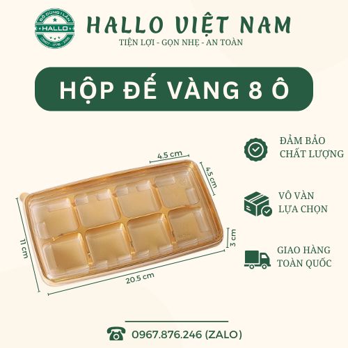- Hộp 8 ngăn đế vàng dùng để đựng bánh mè