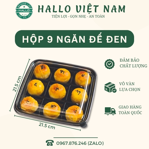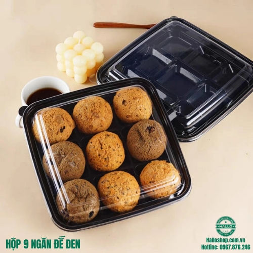 - Hộp 9 ngăn đế đen dùng để đựng bánh mè