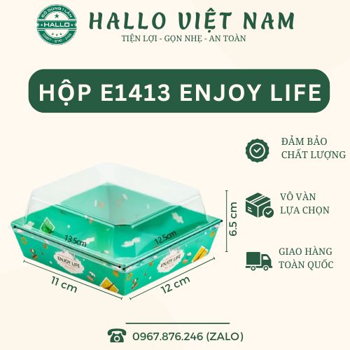 - Hộp bánh caro xanh lá ENJOYLIFE dùng để đựng bánh ngọt các loại