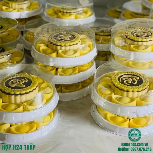Nhờ kích thước lọt lòng 14cm và chiều cao 5.5cm, hộp H24 được sử dung để đựng đa dạng các loại bánh: