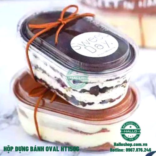 - Hộp đựng bánh Oval HT150G dùng để đựng bánh sữa chua