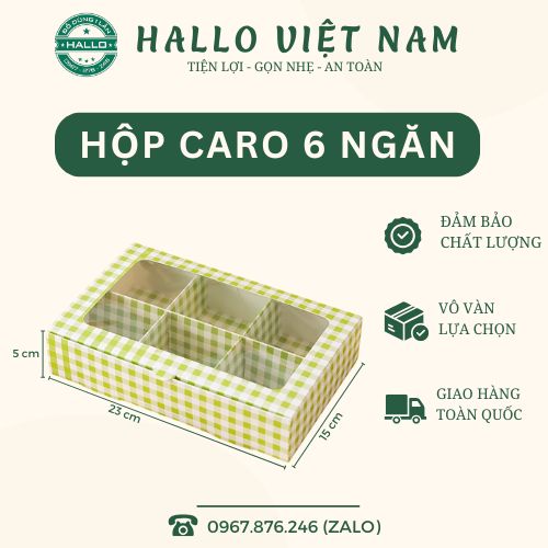 + Hộp caro xanh 6 ngăn dùng để đựng bánh trung thu