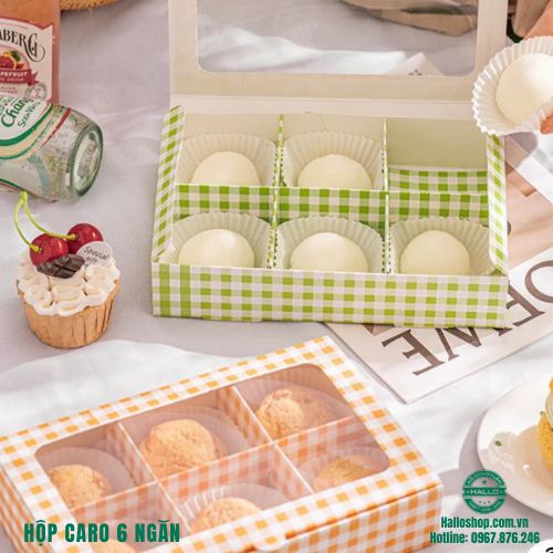 HỘP CARO XANH 6 NGĂN là sản phẩm dùng để đựng bánh mochi, lava trứng chảy, bánh dứa, bánh trung thu và các loại bánh ngọt nhỏ xinh, giúp cho những chiếc bánh của bạn luôn trong đẹp mắt và thơm ngon.