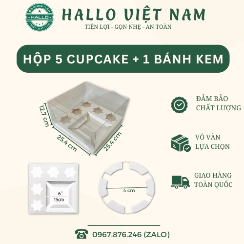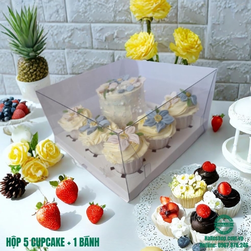 - Hộp 5 cupcake + 1 bánh kem có thể dùng để đựng bánh kem và cupcake
