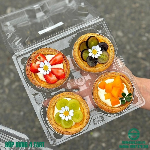 HỘP ĐỰNG 4 TART TRỨNG - HỘP 4 NGĂN ĐỰNG TART TRÁI CÂY