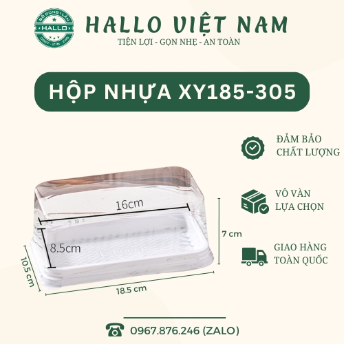 Hộp bánh cuộn XY185-305 là hộp nhựa cao cấp được thiết kế chuyên dụng cho các dòng bánh dài như bánh bông lan cuộn, bánh mì chà bông, bánh mì phô mai tan chảy,... Không chỉ giúp bảo quản bánh tốt, hộp còn nâng tầm sản phẩm với kiểu dáng sang trọng, trong suốt và tiện lợi.