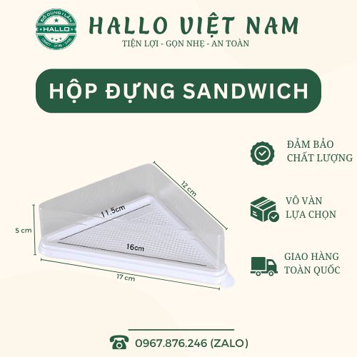+ Hộp nhựa tam giác sandwich dễ bảo quản và đóng gói, giúp tiết kiệm thời gian chuẩn bị