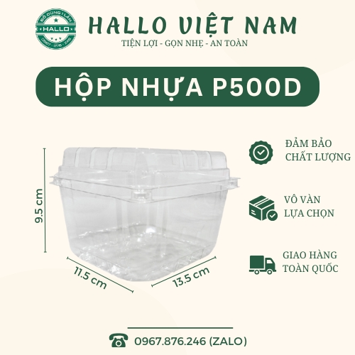 Hộp nhựa P500D là giải pháp đóng gói lý tưởng dành cho các loại trái cây tươi như dâu tây, cà chua bi, nho, cherry,... Với thiết kế có lỗ thoáng khí và chất liệu nhựa trong suốt, hộp không chỉ giúp bảo quản trái cây tươi lâu hơn mà còn tôn lên vẻ đẹp tự nhiên, hấp dẫn của sản phẩm bên trong.