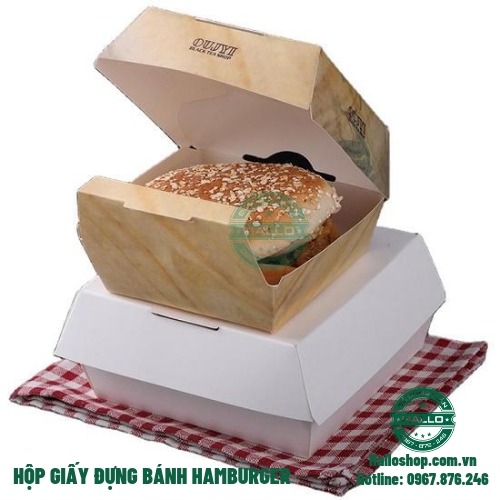 - Hộp giấy đựng bánh hamburger có in hình dùng để đựng bánh hamburger