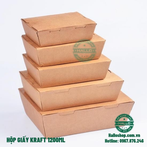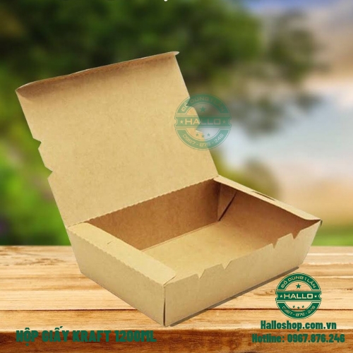 - Hộp giấy nắp gập kraft 1200ml dùng để đựng cơm