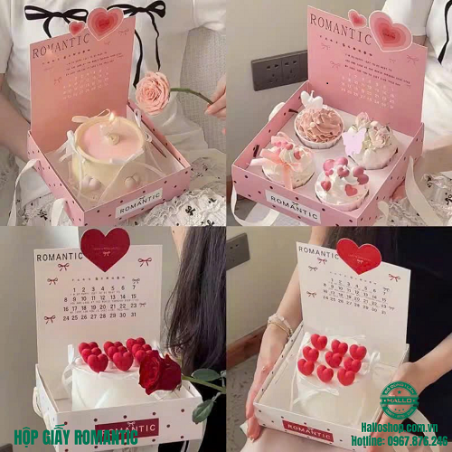 - Hộp bánh thiết kế xinh xắn, dễ thương kèm lịch và lời yêu thương
