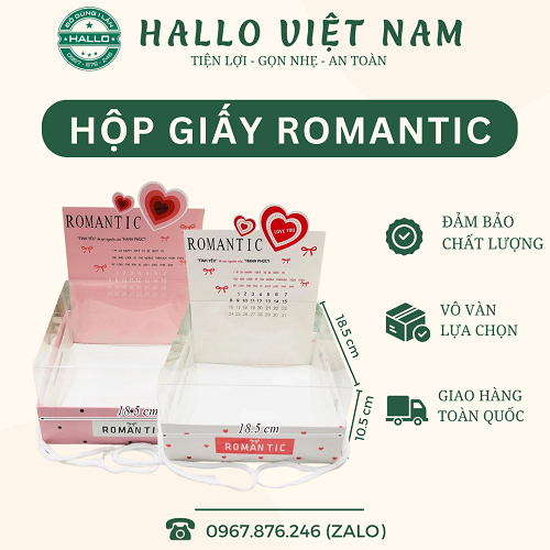 HỘP GIẤY ROMATIC KÈM HỘP MICA CÓ QUAI XÁCH là sản phẩm dùng để đựng bánh dành tặng món quà và những lời chúc yêu thương đến người thương nhân dịp lễ như Valentine, 20/10, và 8/3.