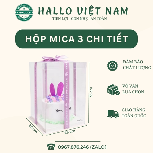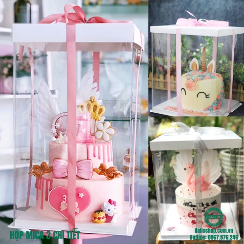 HỘP MICA 3 CHI TIẾT 28*28*35 CM của là sản phẩm dùng để đựng bánh kem sinh nhật, giỏ hoa quả, quà tặng như bánh kẹo v.v, giúp bạn gửi gắm tình yêu thương của mình đến với người nhận.