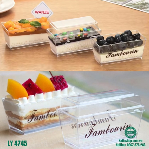 HỘP MICA CỨNG 4745 HÌNH THANG là sản phẩm phù hợp để đựng bánh ngọt, tiramisu, bánh mousse giúp cho những chiếc bánh của bạn luôn đẹp mắt và thơm ngon.