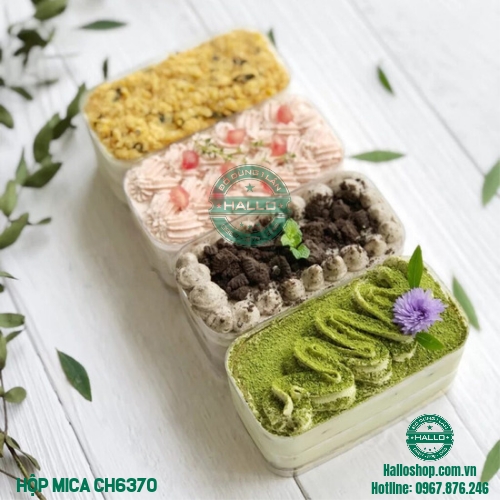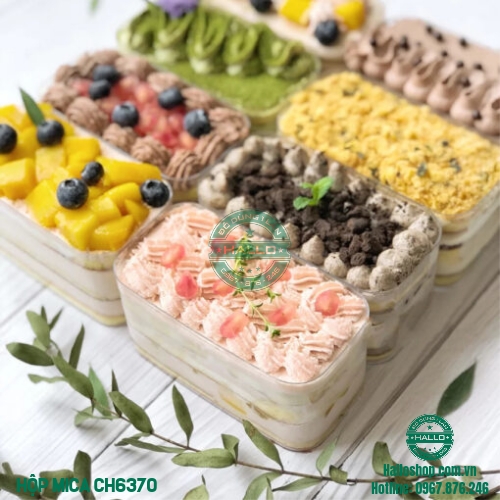 - Hộp đựng bánh lạnh hình chữ nhật 6370 dùng để đựng bánh panna cotta