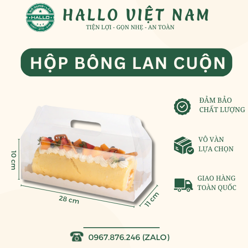 + Hộp mica trong suốt quai xách dùng để đựng bông lan cuộn