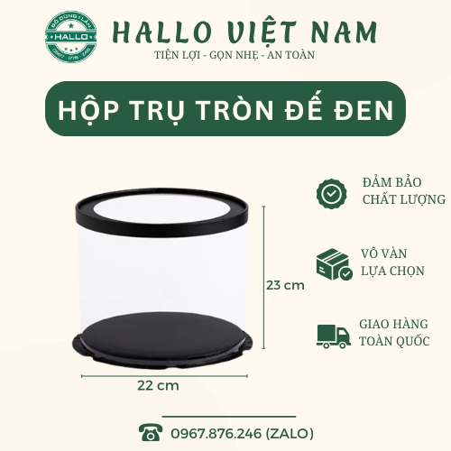 Mua hộp mica trụ tròn đế đen tại Hallo Vietnam, khách hàng sẽ nhận được sản phẩm chính hãng, chất lượng an toàn, phù hợp cho tiệm bánh, cửa hàng kinh doanh đồ ngọt và các cơ sở sản xuất bánh quy mô nhỏ đến lớn. Sản phẩm của Hallo Vietnam không chỉ đa dạng về mẫu mã, kích thước và dung tích, mà còn đáp ứng linh hoạt mọi nhu cầu sử dụng trong nướng, đựng và bảo quản bánh. Chúng tôi cam kết tất cả sản phẩm có nguồn gốc rõ ràng, được kiểm định chất lượng nghiêm ngặt và đạt tiêu chuẩn an toàn thực phẩm, đảm bảo tuyệt đối an toàn cho người tiêu dùng.