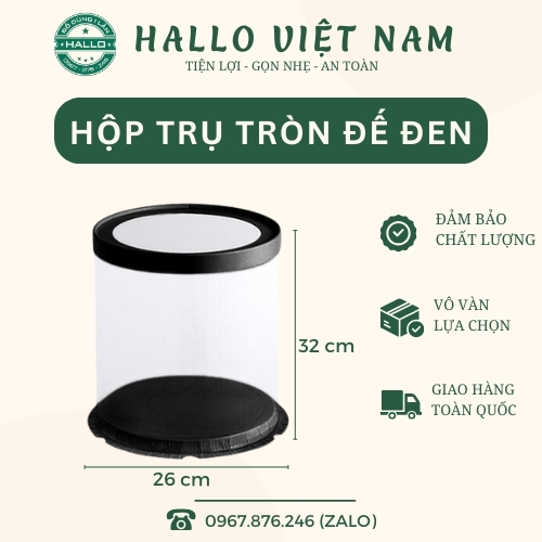 MUA HỘP MICA TRỤ TRÒN ĐẾ ĐEN TẠI HALLO VIETNAM