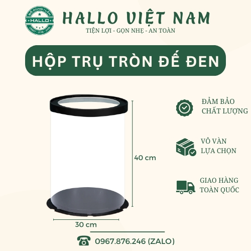 MUA HỘP MICA TRỤ TRÒN ĐẾ ĐEN TẠI HALLO VIETNAM