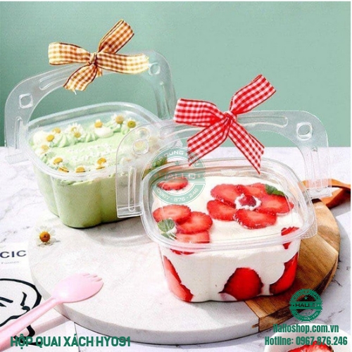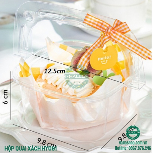 - Hộp nhựa đựng bánh có quai xách HY091 dùng để đựng bánh mousse, pandacotta, tiramisu
