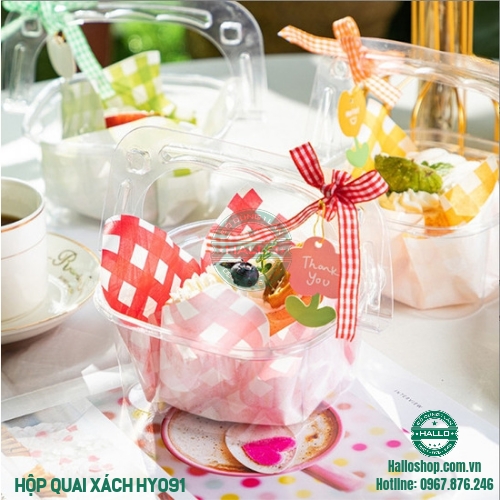 - Hộp nhựa đựng bánh có quai xách HY091 dùng để đựng các loại bánh ngọt