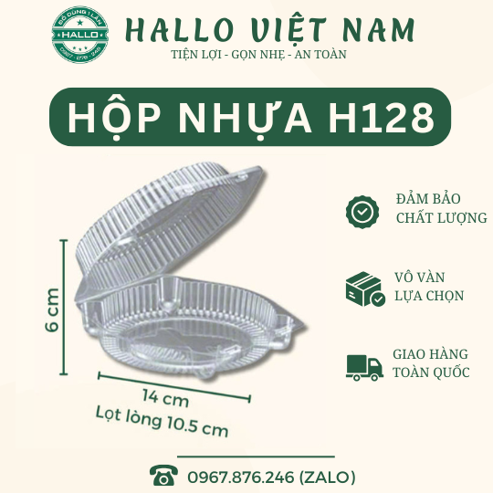 Hộp nhựa H128 được làm từ chất liệu nhựa trong suốt, ngoài sử dụng để đóng gói bánh thì nhìn sản phẩm bánh còn rất đẹp, có tính thẩm mỹ, có thể nhìn được đồ ăn bên trong. Trong quá trình vận chuyển có thể quan sát được bánh bên trong.
