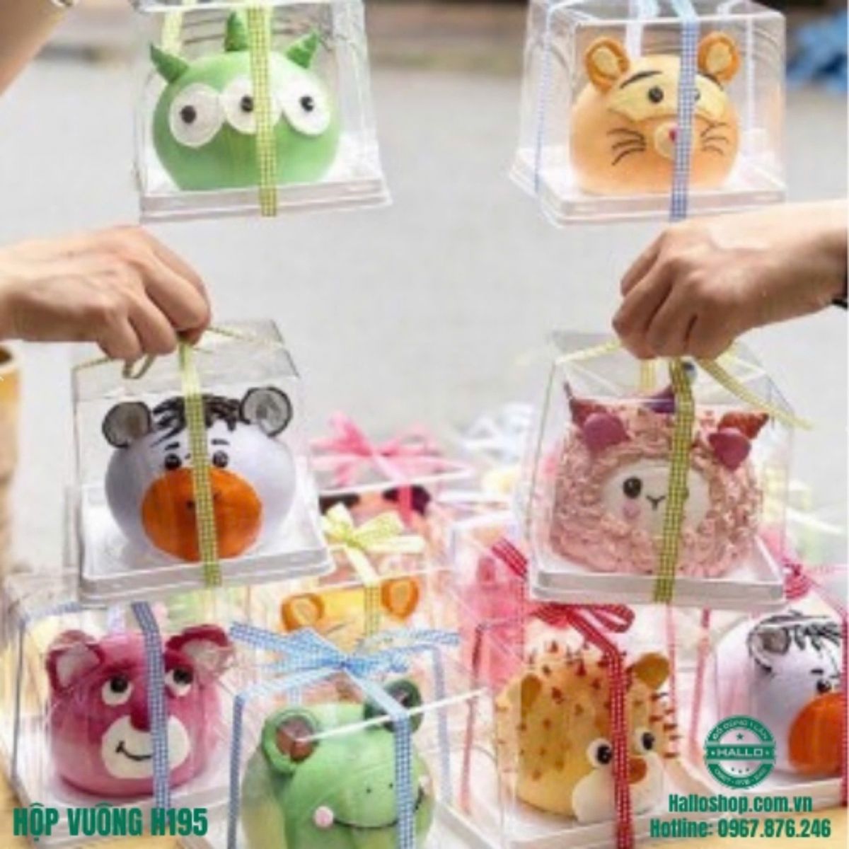 - Hộp nhựa mica trong, dễ dàng trình bày những chiếc bánh xinh xắn