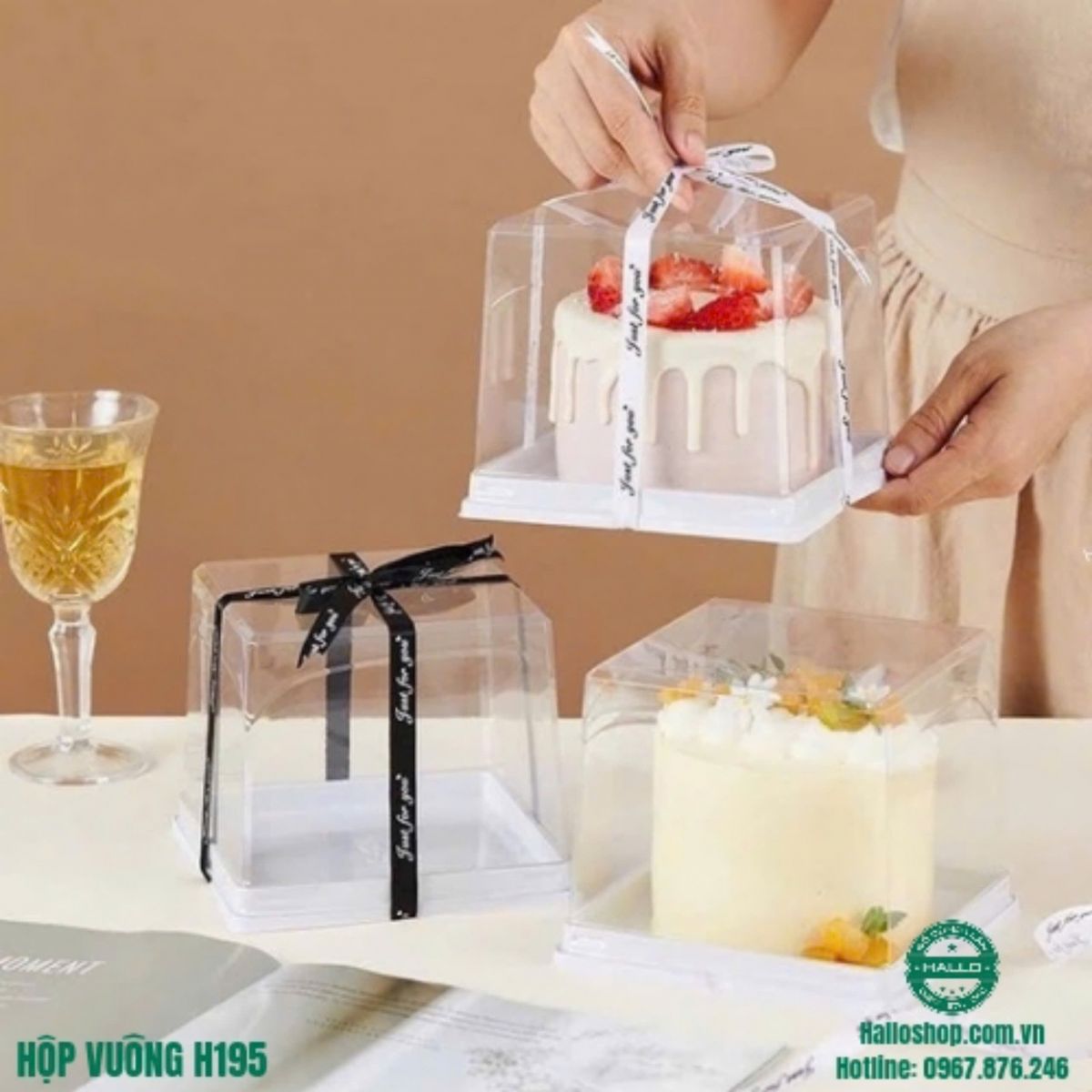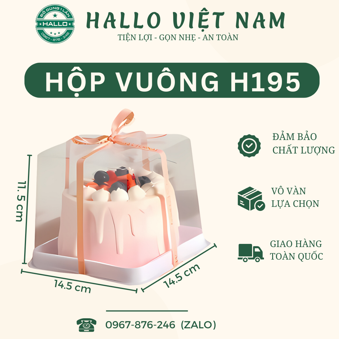- Hộp H195 dùng để đựng bánh kem, bánh gato 10-13 cm