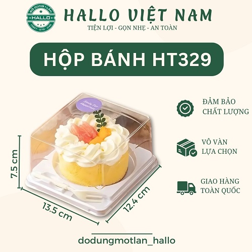 - Hộp bánh kèm nĩa HT329 có lớp nhựa trong suốt tăng thẩm mỹ cho bánh, khiến bánh trở nên đẹp và bày trí gọn gàng.
