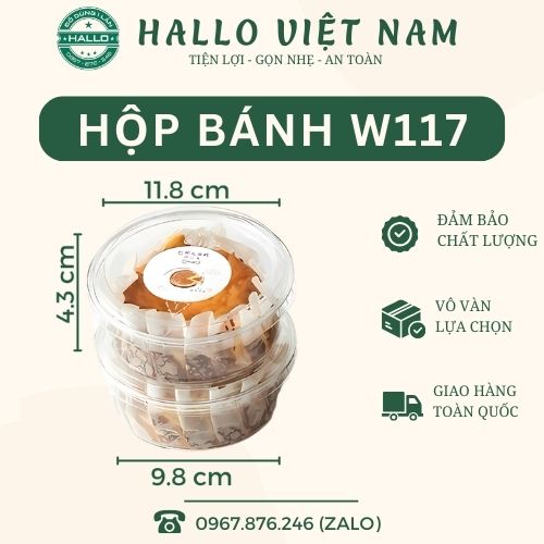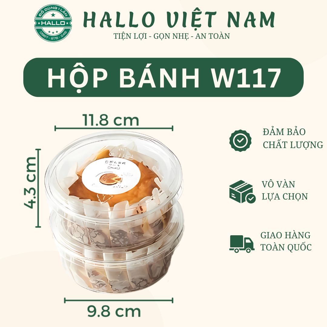 HỘP NHỰA TRÒN W117 230ml là sản phẩm dùng để đựng bánh mousse, tiramisu, kem cheese, phô mai trứng chảy, bông lan trứng muối giúp cho sản phẩm của bạn luôn được bảo quản tốt, đẹp mắt.