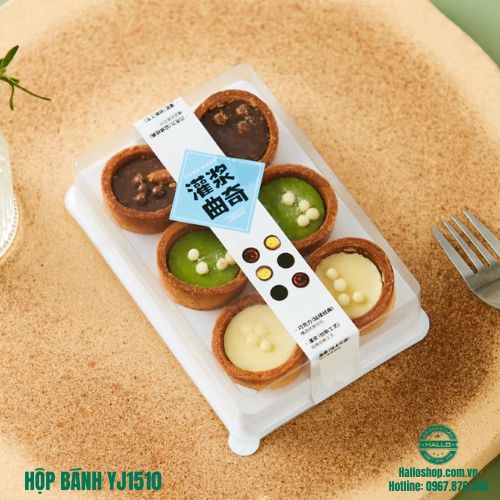 - Hộp PET 6 ô đế trắng dùng để đựng tart trứng mini
