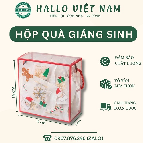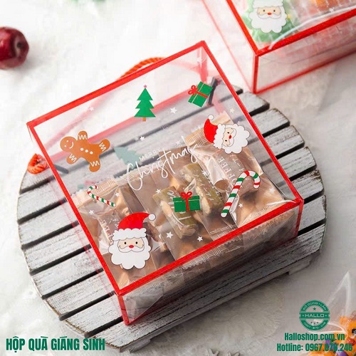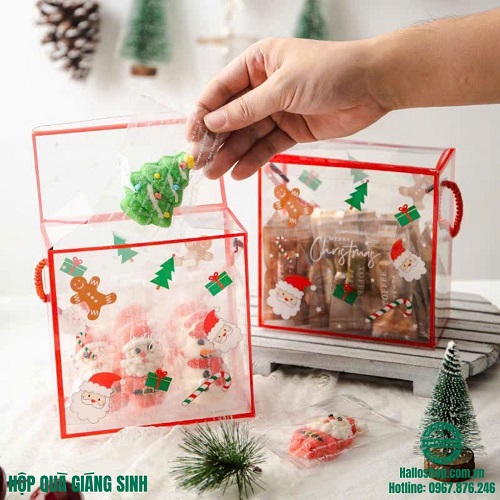 HỘP QUÀ MICA GIÁNG SINH CÓ QUAI XÁCH là sản phẩm dùng để đựng bánh và hoa dành tặng món quà và những lời chúc yêu thương đến người thân nhân dịp lễ như 20/10, và 8/3.