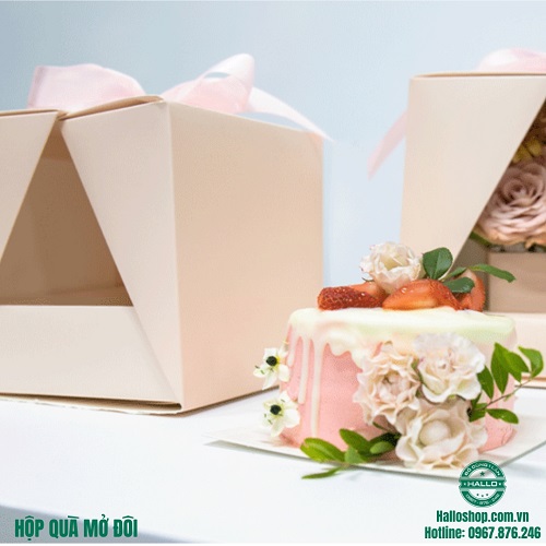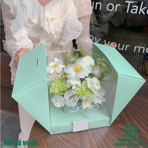 HỘP QUÀ MỞ ĐÔI là sản phẩm dùng để đựng bánh, cắm hoa, v.v dành tặng người thân nhân dịp lễ như 20/10, và 8/3.