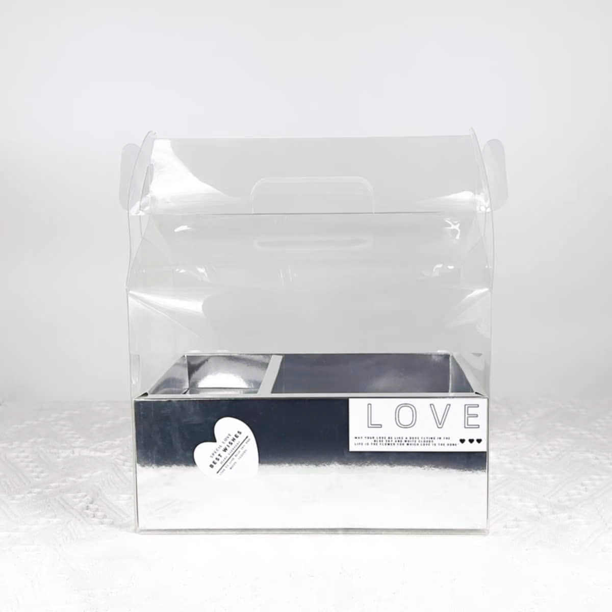 - Hộp có quai xách tiện lợi, thành hộp nhựa mica trong, dễ dàng trình bày những chiếc bánh xinh xắn