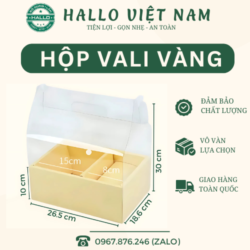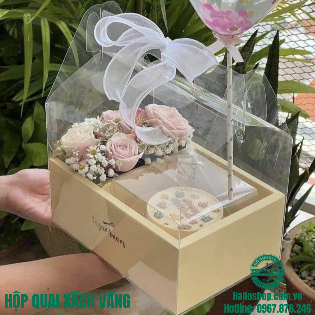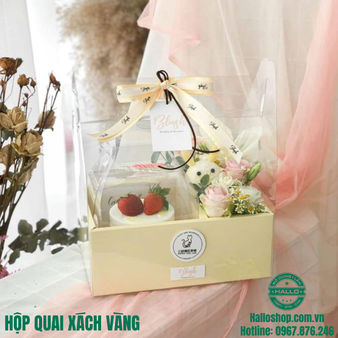 MUA HỘP QUÀ MÀU VÀNG CÓ QUAI XÁCH KÈM ĐẾ BÁNH TẠI HALLO VIETNAM