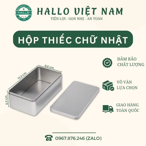 - Hộp thiếc chữ nhật có thiết kế xinh xắn, đơn giản nhưng sang trọng, lịch sử, tăng độ thẩm mỹ cho sản phẩm