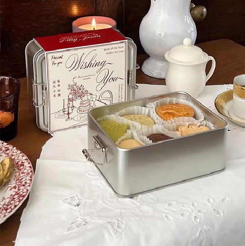 - Hộp thiếc chữ nhật dùng để đựng bánh quy