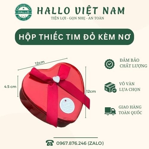 Kích thước: Hộp thiếc trái tim có chiều dài x chiều rộng: 12 cm x 12 cm, cùng chiều cao 4.5 cm.
