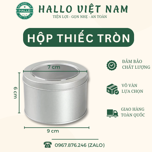 Kích thước: Hộp thiếc tròn có đáy dài là 9 cm với chiều cao 9 cm