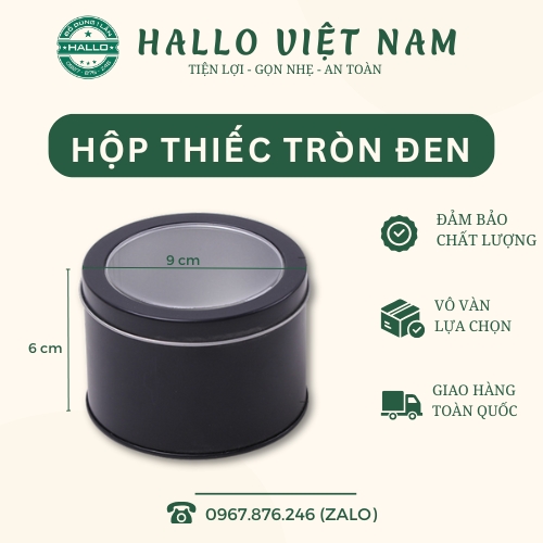 Kích thước: Hộp thiếc tròn có đáy dài là 9 cm với chiều cao 9 cm