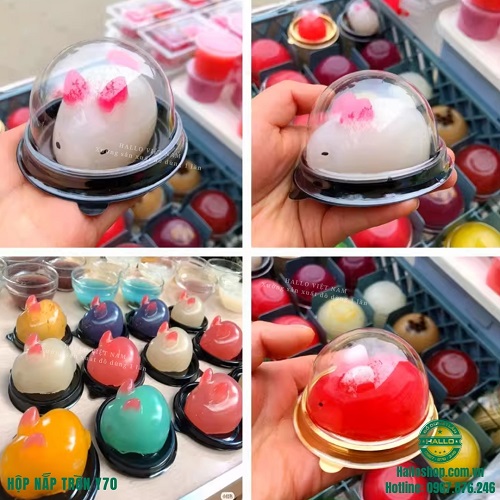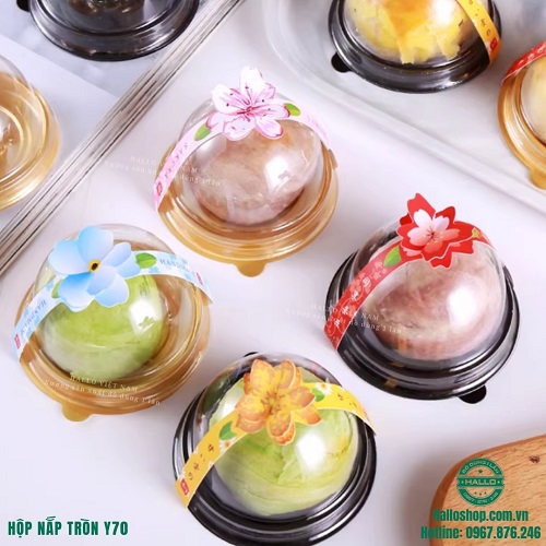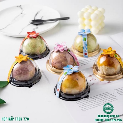Hộp nhựa nắp tròn Y70 là giải pháp bao bì hoàn hảo dành cho những chiếc bánh trung thu mini, bánh lava trứng chảy, bánh mochi từ 50g đến 80g. Với thiết kế tinh tế, nhỏ gọn cùng phần nắp bán cầu hiện đại, mẫu hộp này không chỉ giúp tôn vinh vẻ đẹp của chiếc bánh mà còn đảm bảo sự chắc chắn trong suốt quá trình vận chuyển đến tay khách hàng.