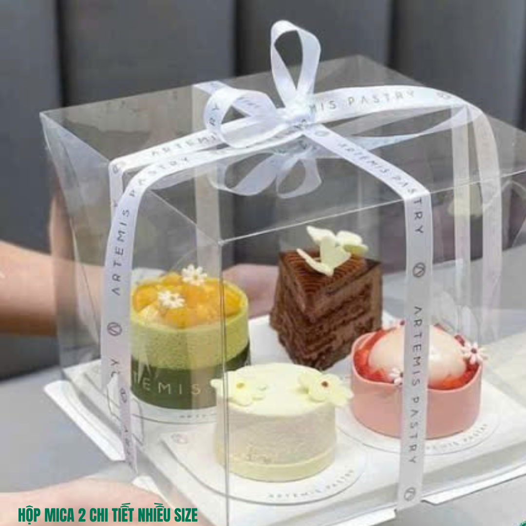 - Hộp được làm từ nhựa cao cấp, hộp nhựa mica trong, dễ dàng trình bày những chiếc bánh xinh xắn