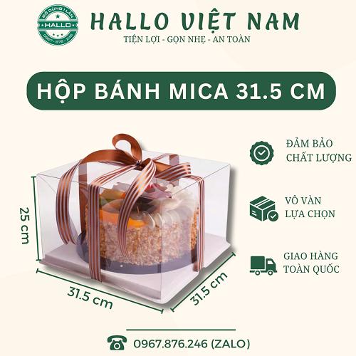 HỘP MICA 2 CHI TIẾT 31.5*31.5*25 CM của là sản phẩm dùng để đựng bánh kem sinh nhật, giỏ hoa quả, quà tặng như bánh kẹo v.v, giúp bạn gửi gắm tình yêu thương của mình đến với người nhận.