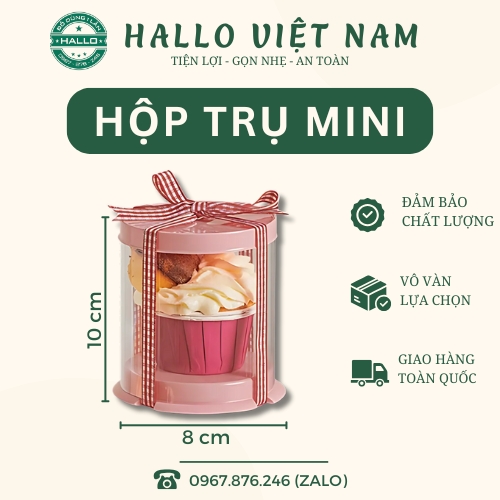 Hộp trụ mini đựng 1 cupcake là dòng sản phẩm được ưa chuộng trong ngành bánh ngọt bởi thiết kế nhỏ gọn, tinh tế và đầy tính thẩm mỹ. Đây là lựa chọn lý tưởng để đựng các loại bánh kem nhỏ, đặc biệt là cupcake, mousse, tiramisu mini hay các món tráng miệng mang đi.